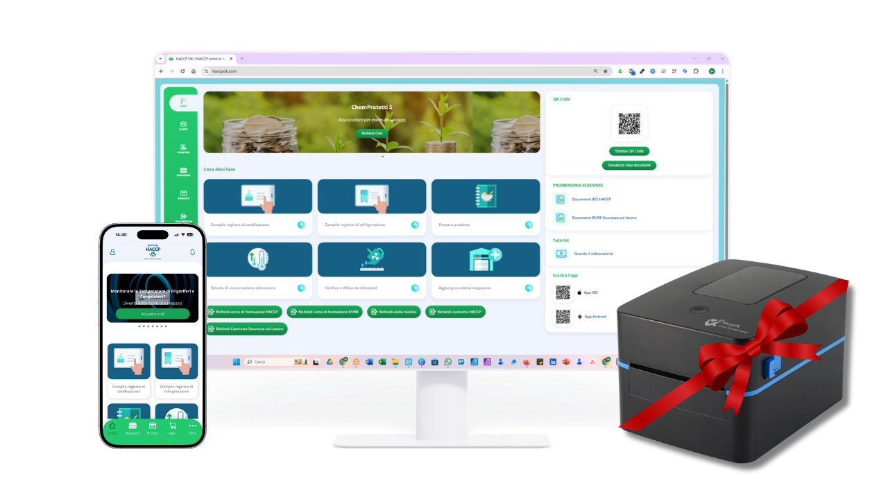 Quest’anno il Natale porta più valore alla tua Azienda! Con la speciale promozione firmata Chemichal S.p.A., abbonandoti al Gestionale HaccpOK ottieni l’etichettatrice HaccpOKPRINT in omaggio e accedi al 50% di sconto sui servizi di consulenza HACCP e Sicurezza sul Lavoro.